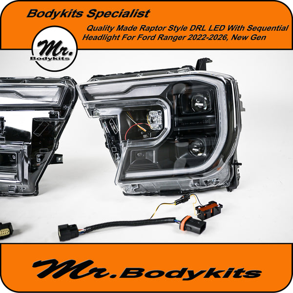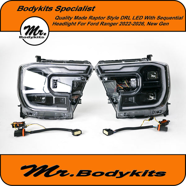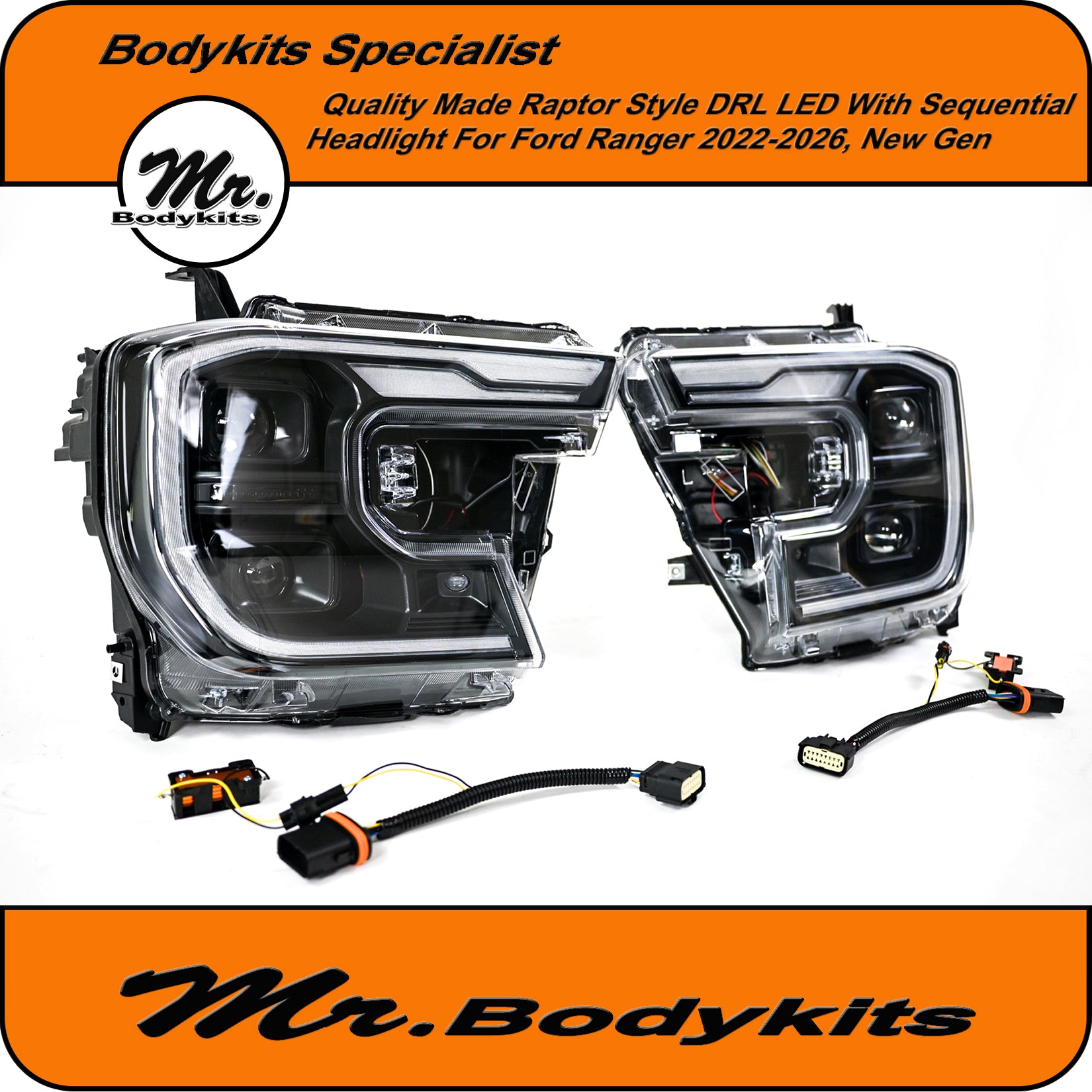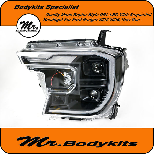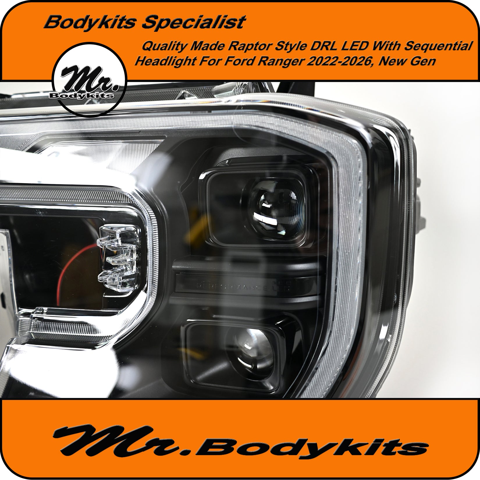 Ford Ranger 2022-2026 — Raptor Style LED Projector Headlights (Sequential Indicators)