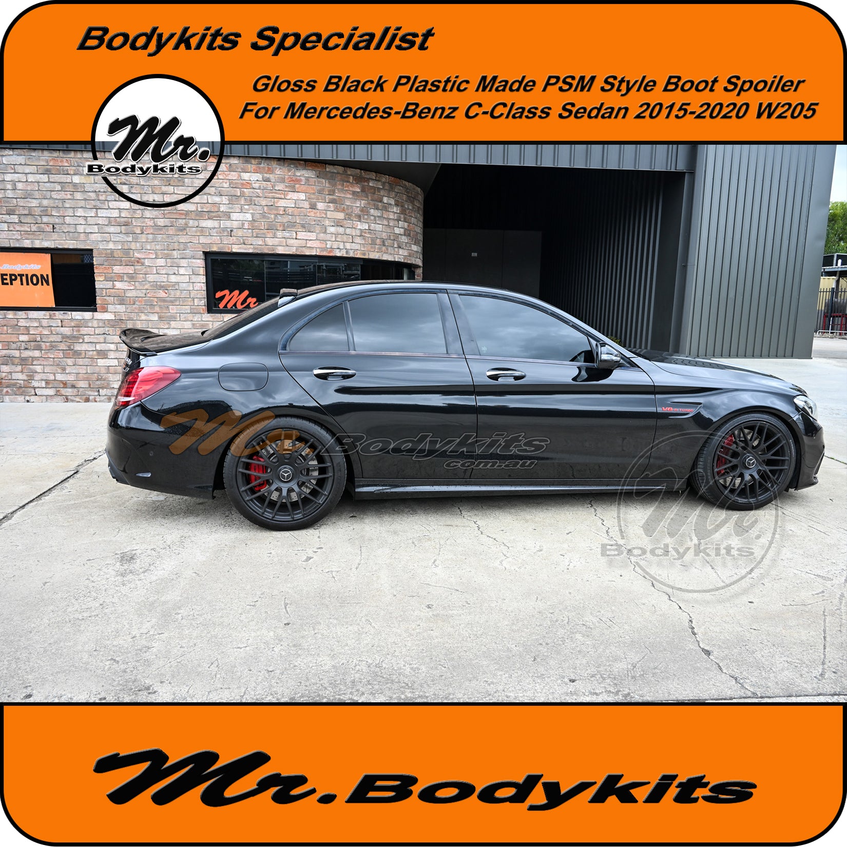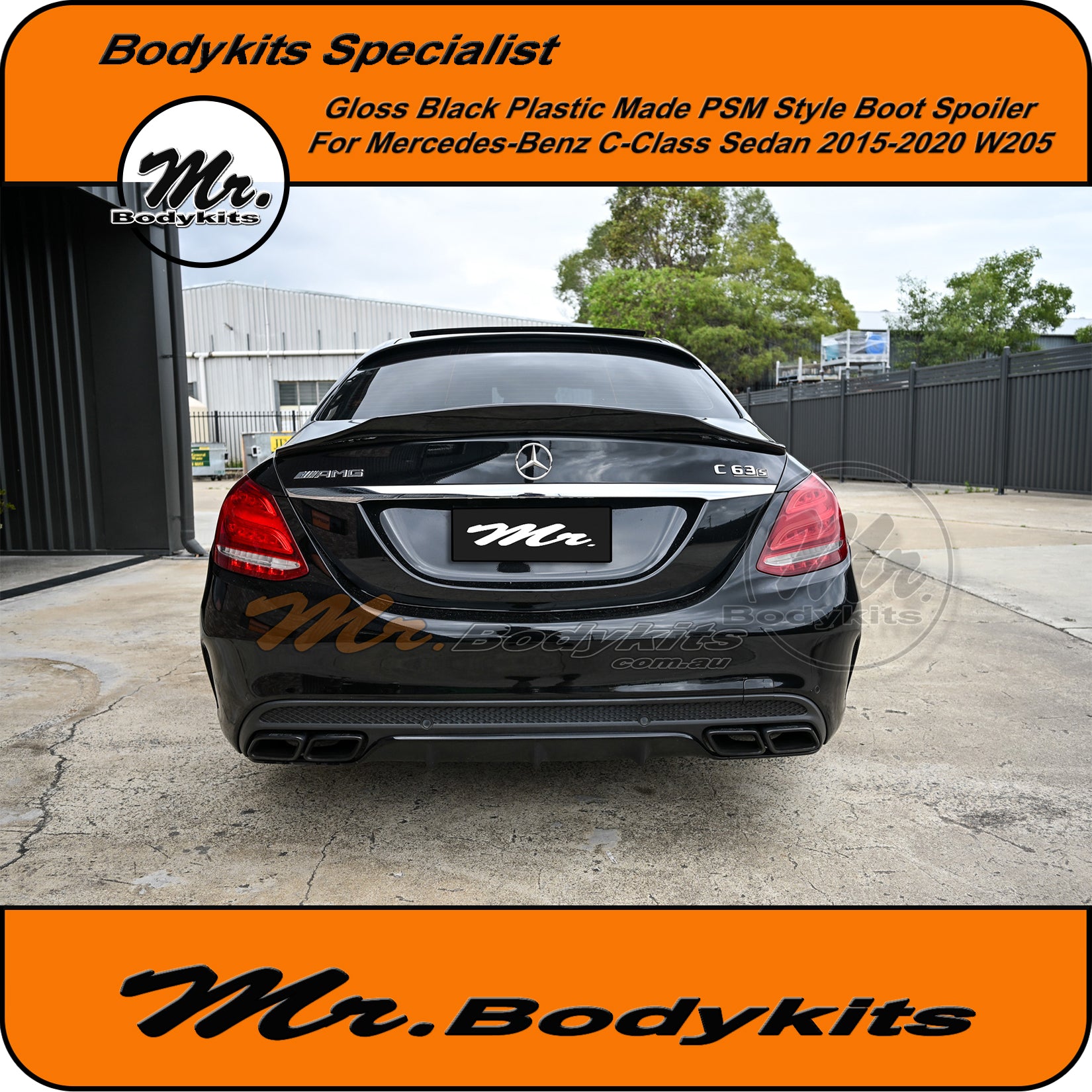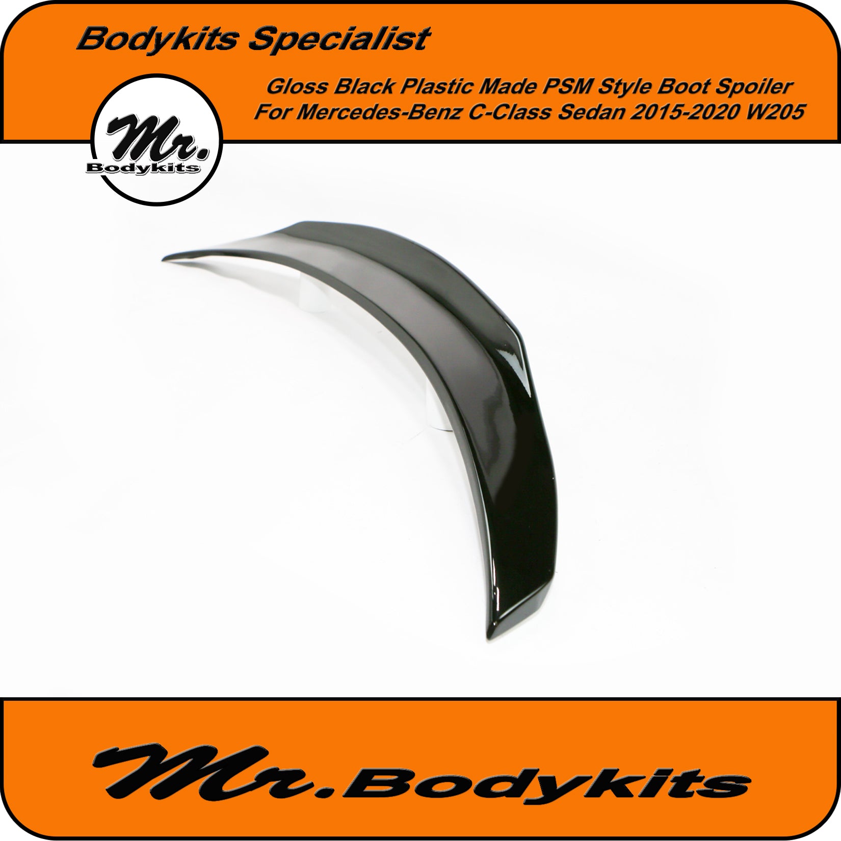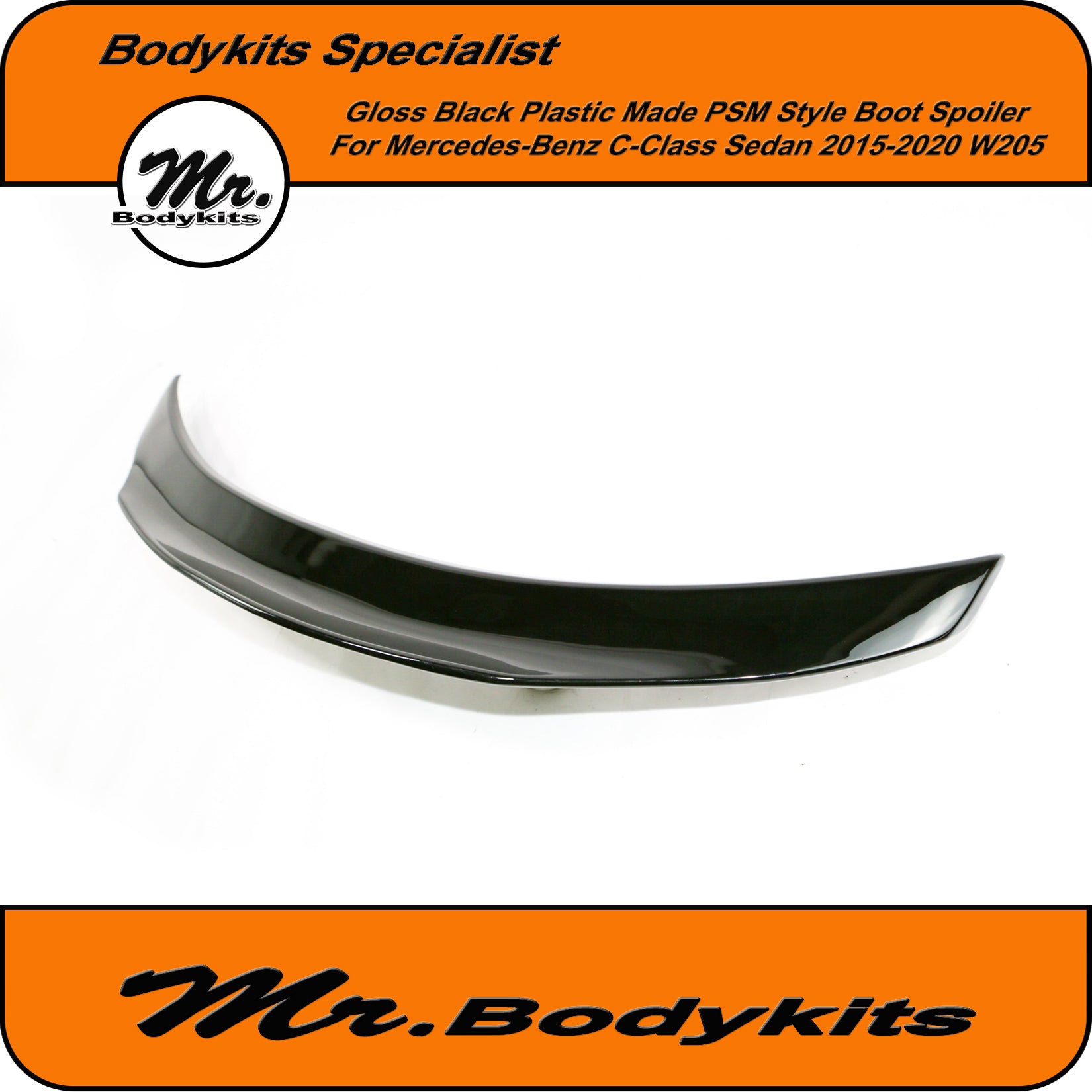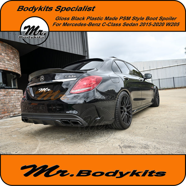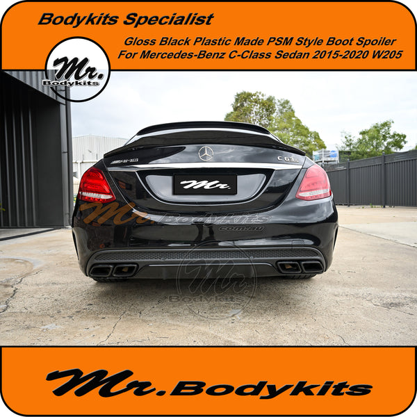Brand new gloss black plastic made PSM style rear boot spoiler wing for C-Class 2015-2020 sedan