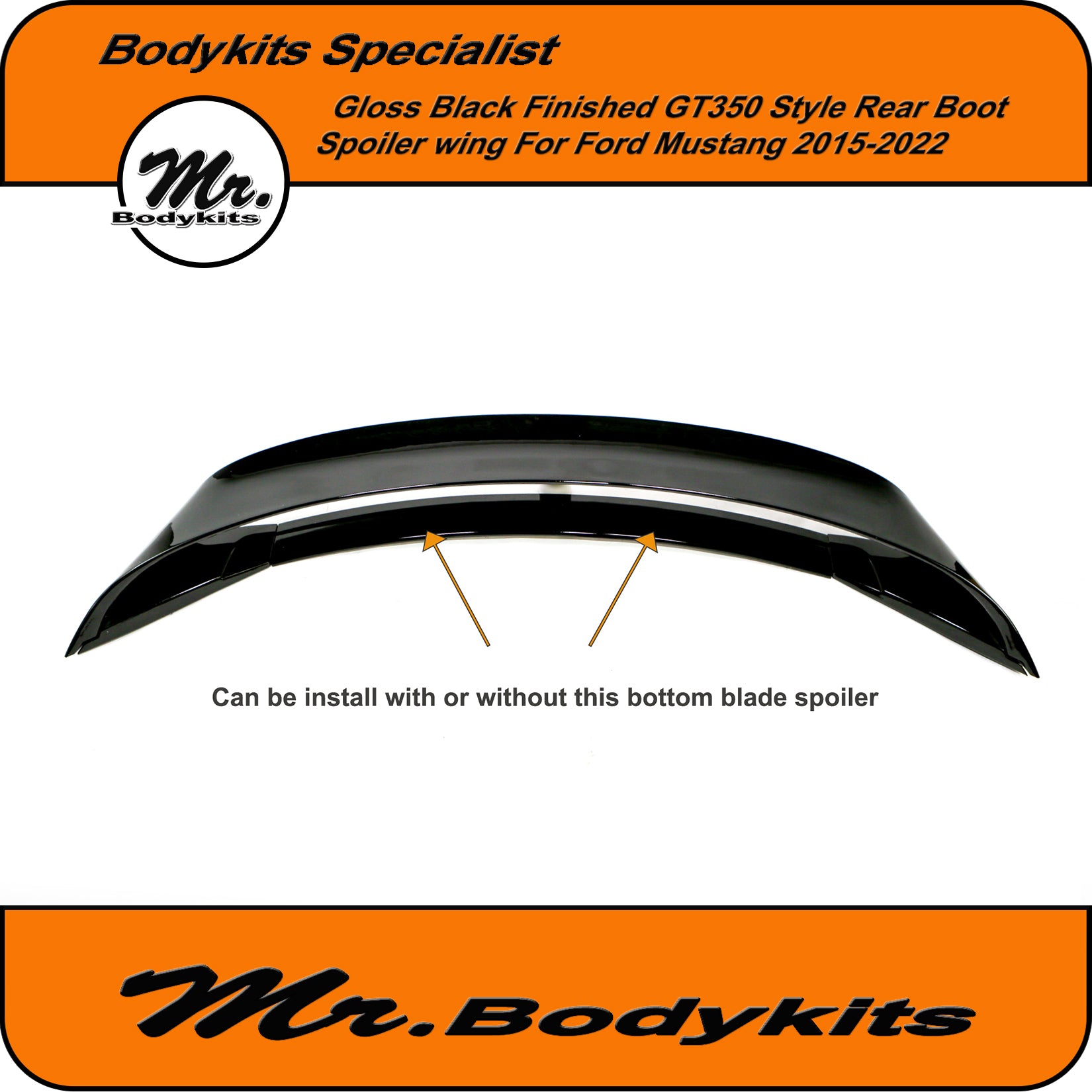 Brand new gloss black finished plastic made GT350R style rear boot spoiler wing for Ford Mustang 2015-2022