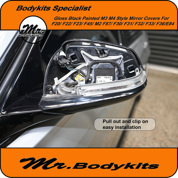Brand new pair of gloss black painted replacement cover for BMW 1, 2, 3, 4, M, X1 series