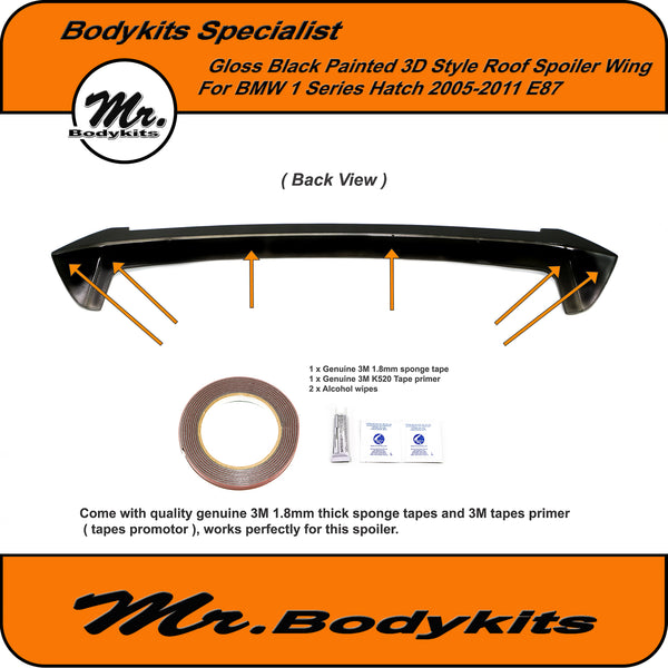 Gloss Black Painted 3D Style Roof Spoiler Wing For BMW 1 Series Hatch 2005-2011 E87
