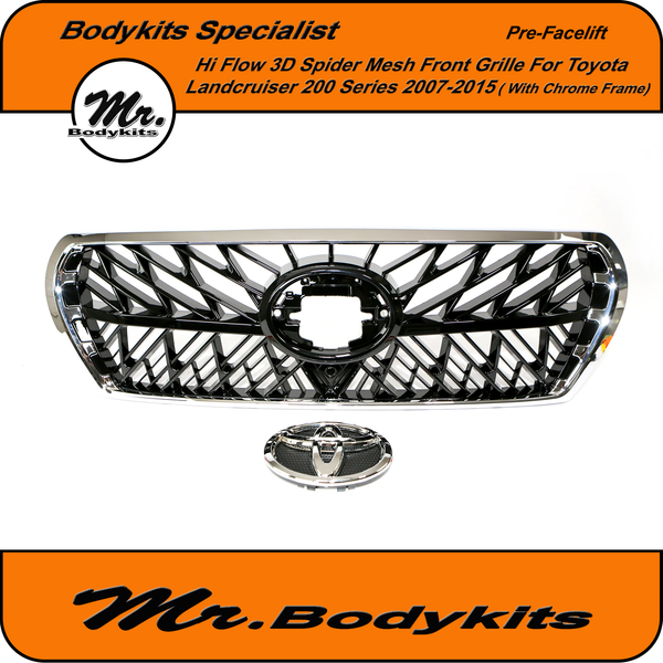 Toyota Landcruiser 200 Series Spider Mesh Front Grille (Chrome Surround) for 2007-2015 (Pre-Facelift)