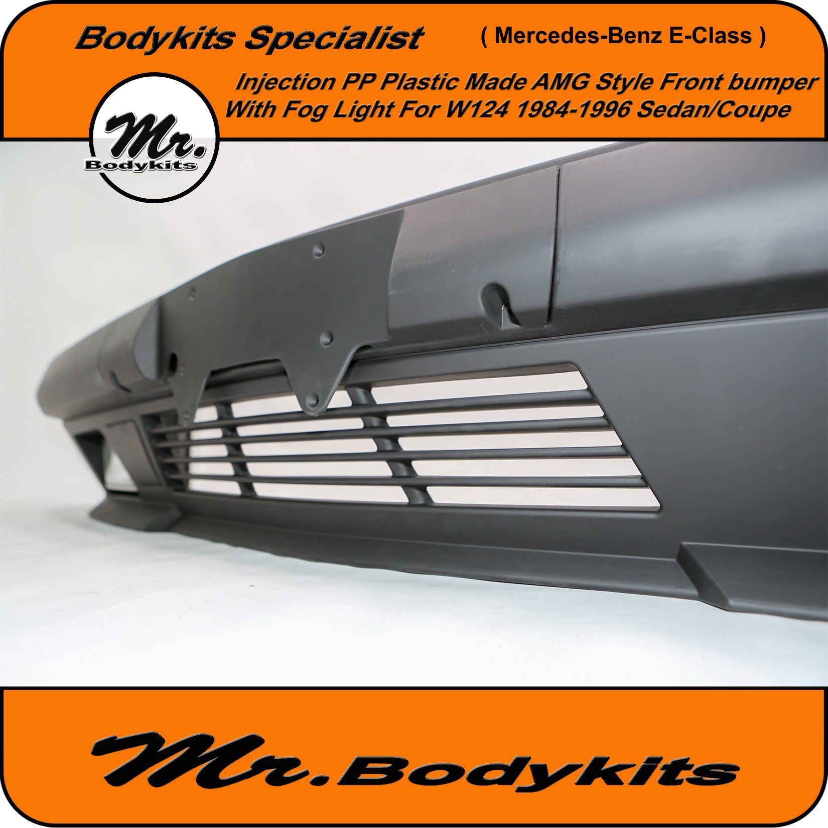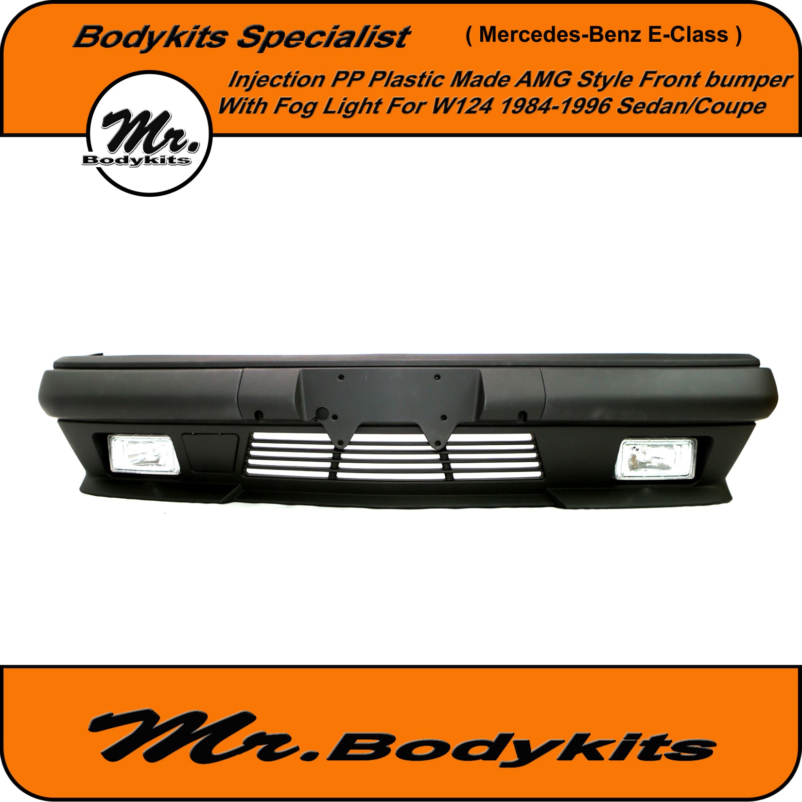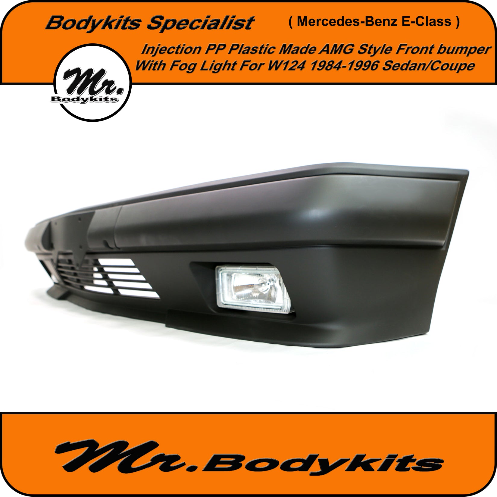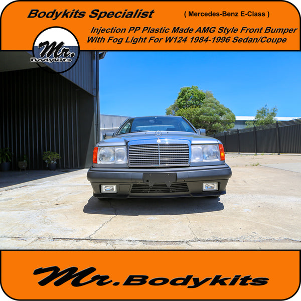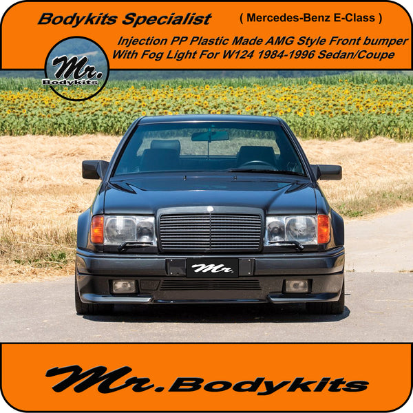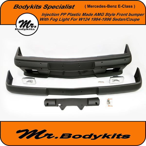 Brand new injection plastic made full AMG style front bumper with fog lights for Mercedes-Benz E-Class 1984-1996 W124, sedan/coupe