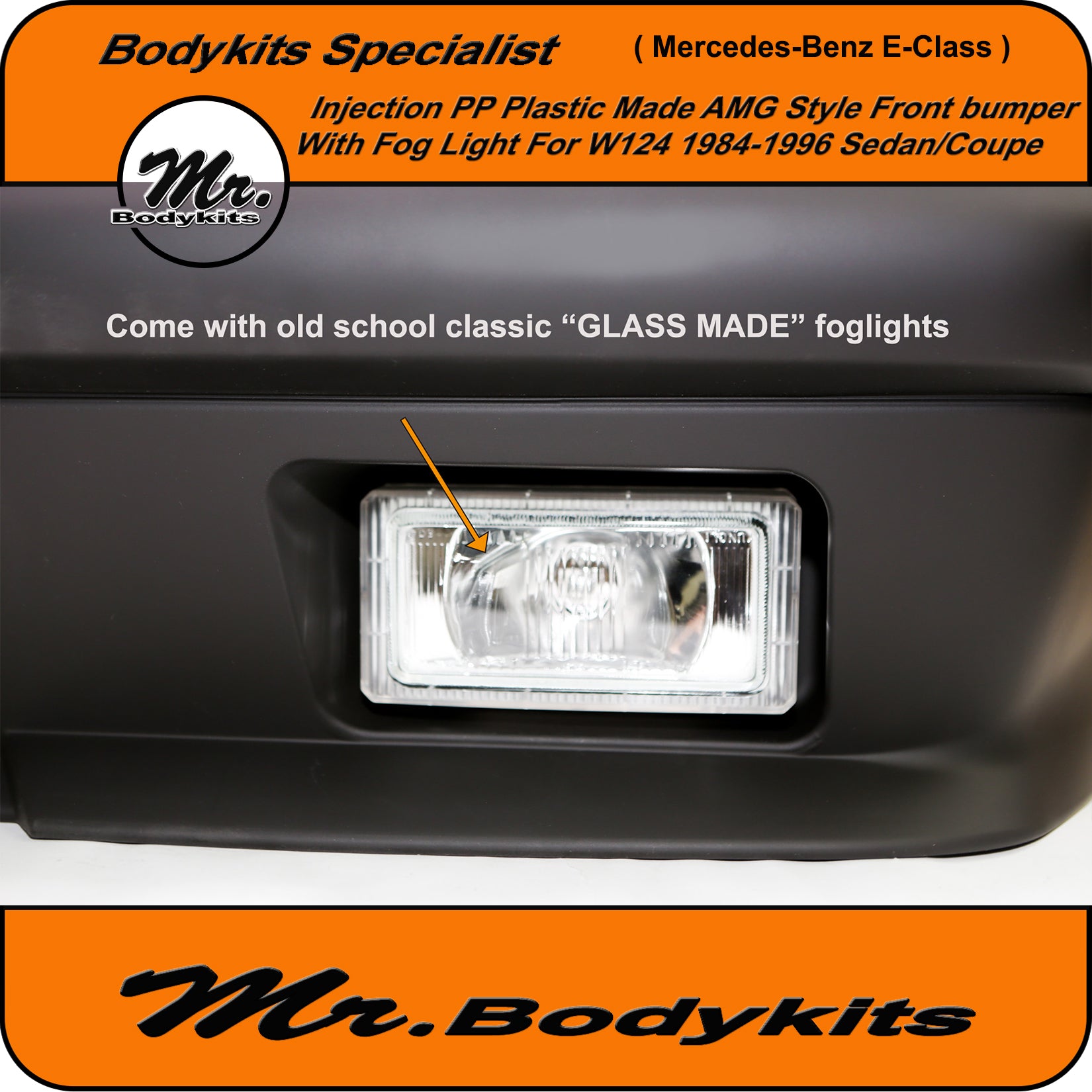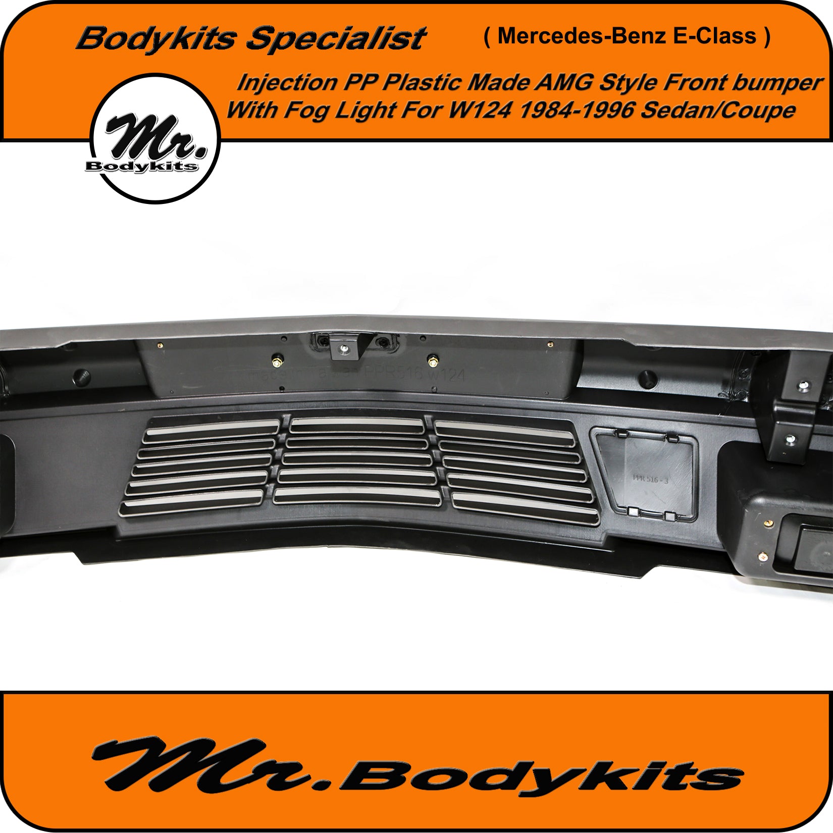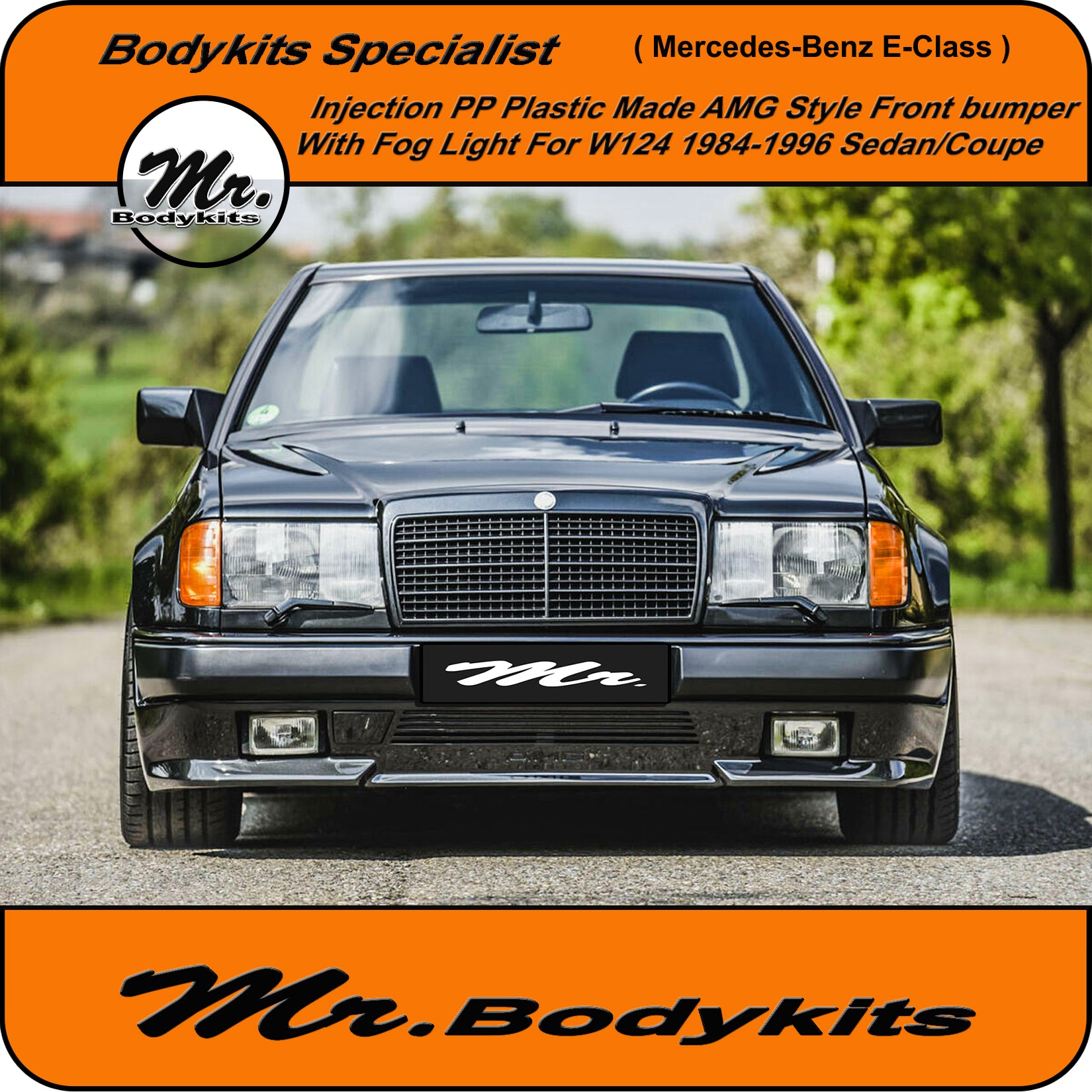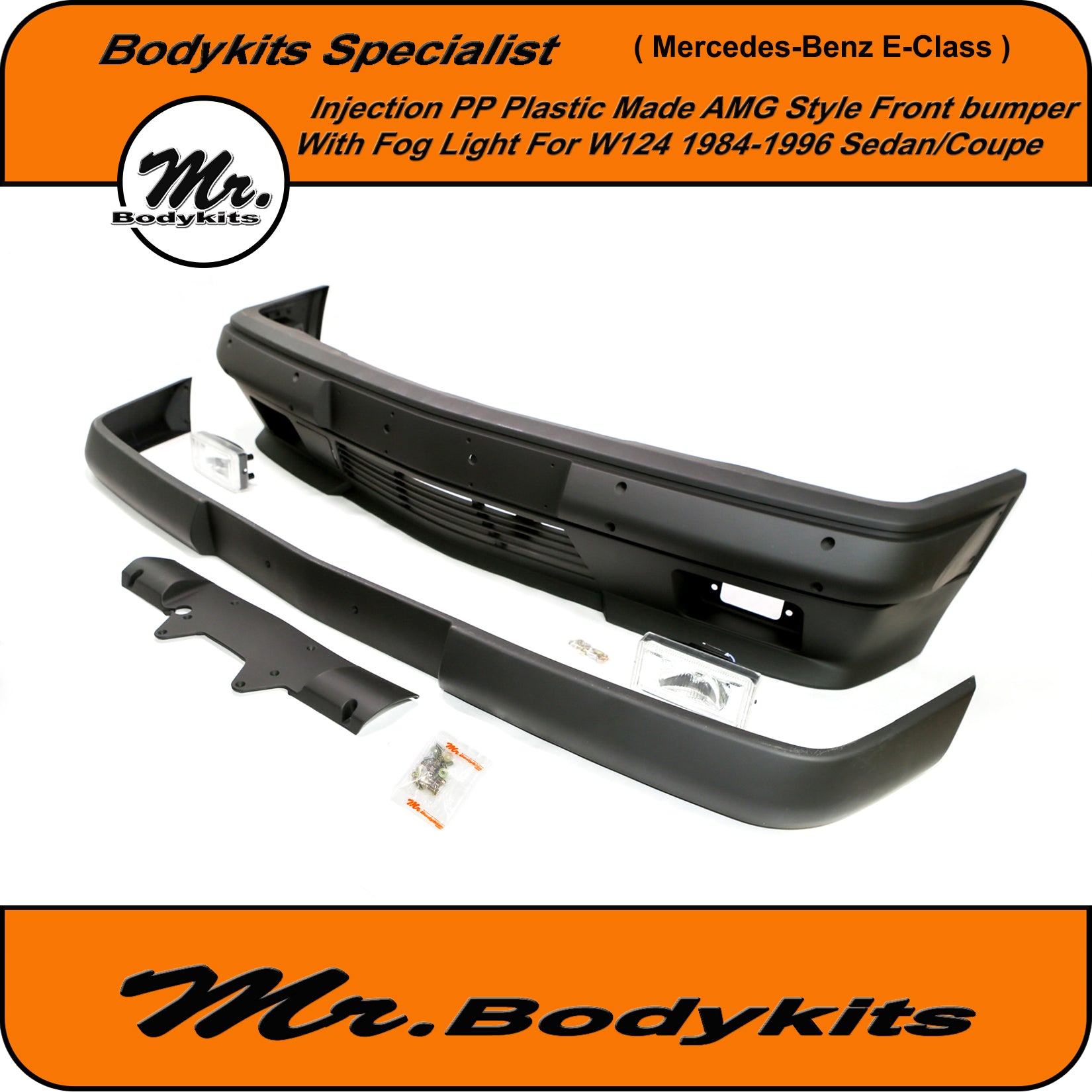 Brand new injection plastic made full AMG style front bumper with fog lights for Mercedes-Benz E-Class 1984-1996 W124, sedan/coupe