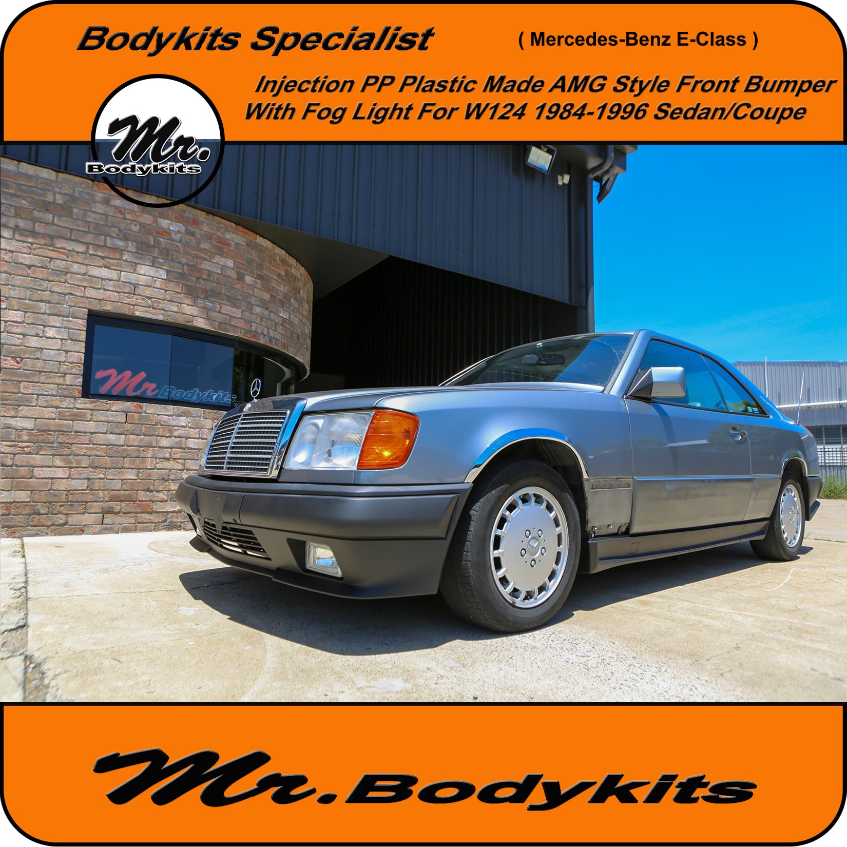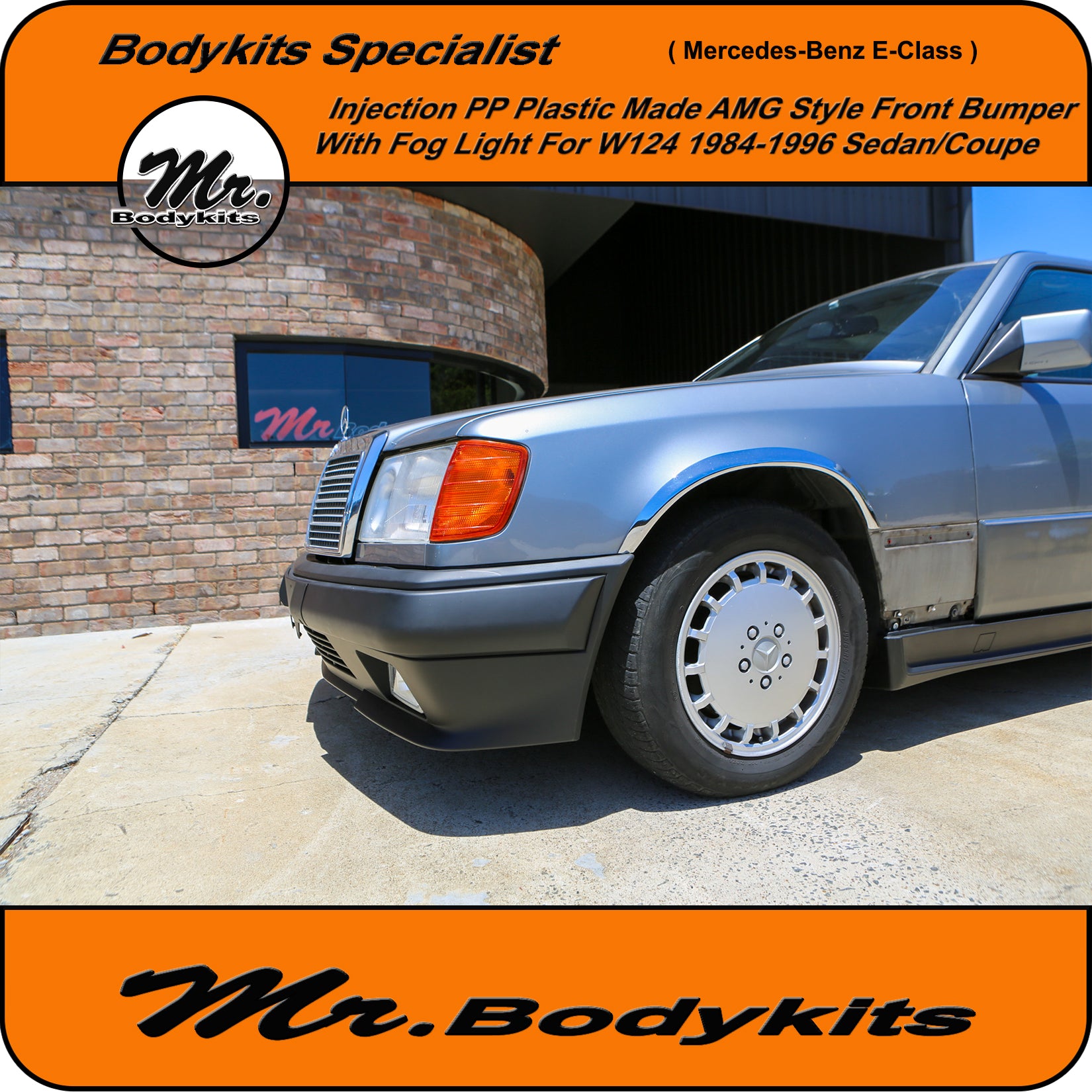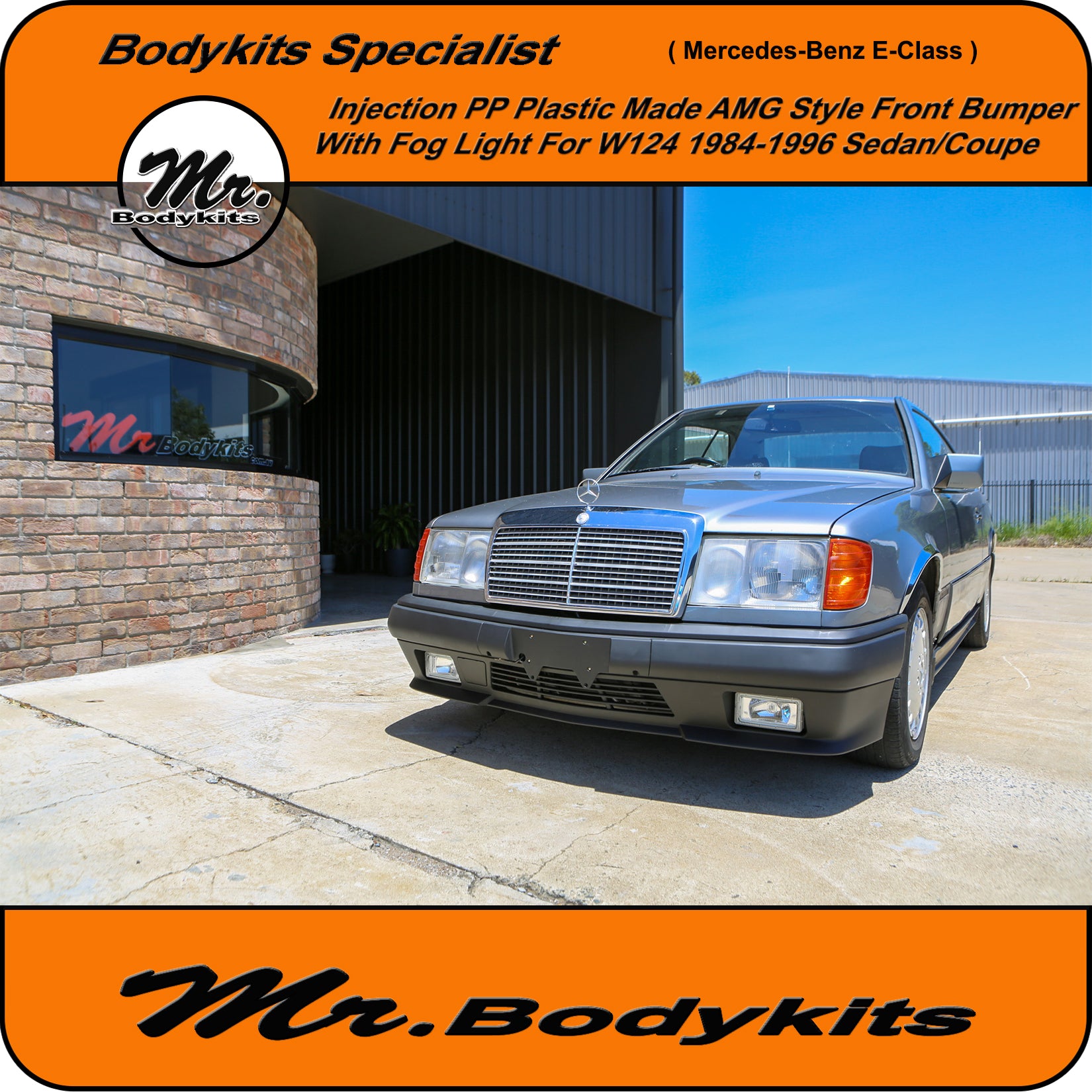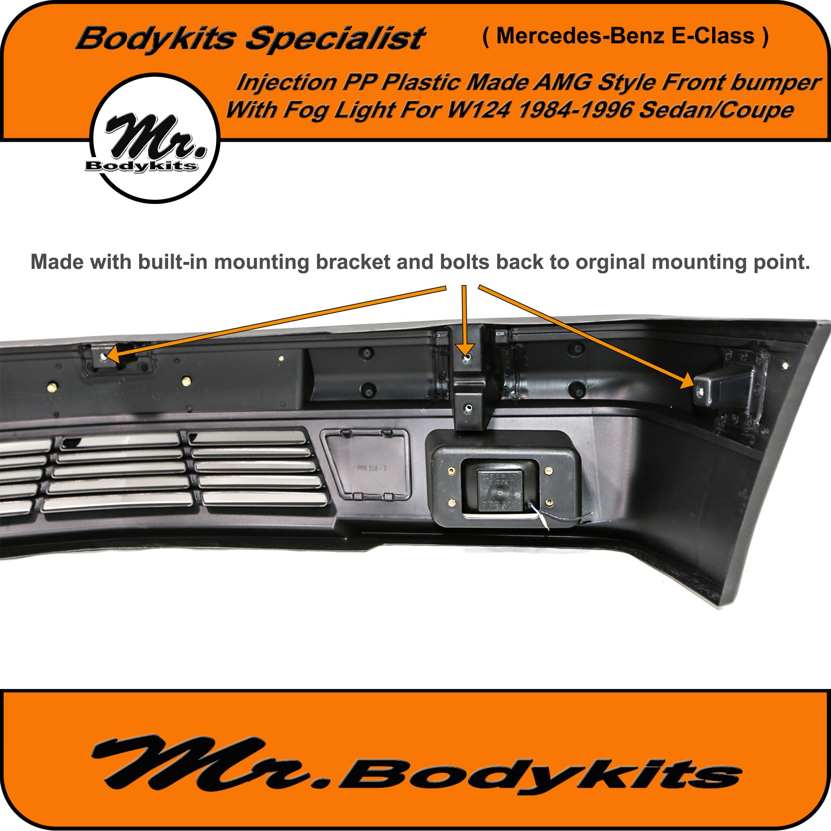 Brand new injection plastic made full AMG style front bumper with fog lights for Mercedes-Benz E-Class 1984-1996 W124, sedan/coupe