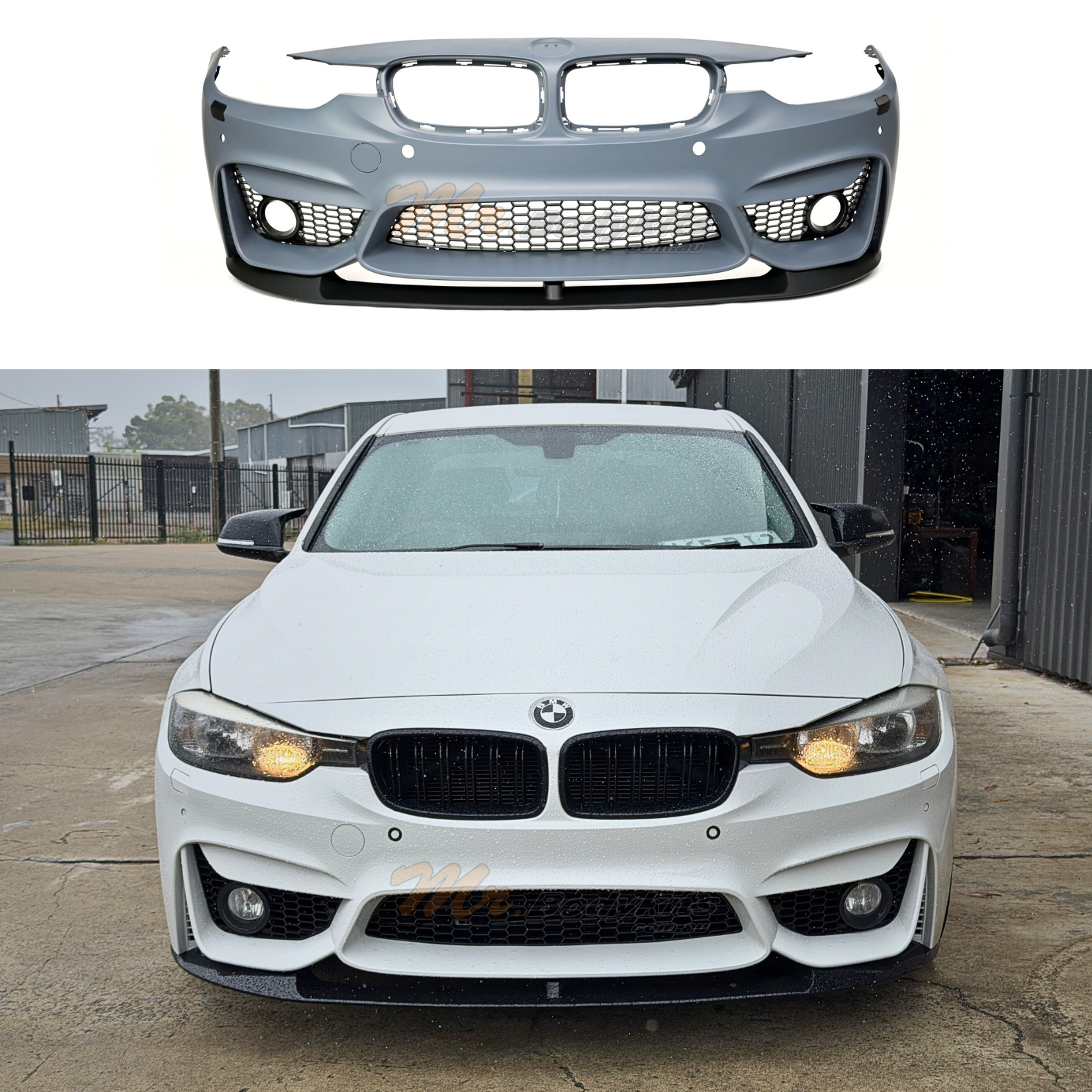 Includes M3-style front bumper, detachable front lip splitter, honeycomb lower grille, parking sensor holes, number plate bracket, and mounting brackets β everything you need in one package. -