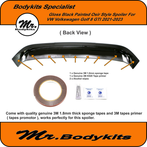 • Come with genuine 3M tapes and 3m tape primer kits, ready to install within 10mins of installation time. ( please make sure to apply the 3M tapes primer where the double-size tape goes on, back of the spoiler and on the surface where the tapes going to stick on👌🏻 )