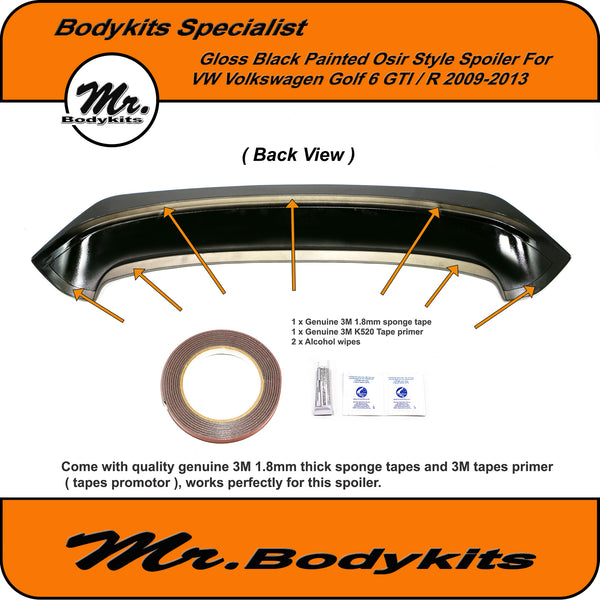 Gloss black plastic made Osir style rear boot spoiler for Volkswagen Golf 6 GTi 2009-2013