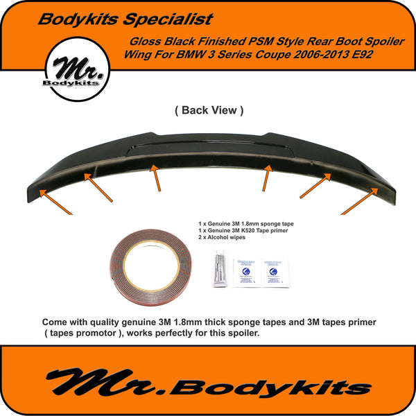 Gloss black plastic made PSM style rear boot spoiler for BMW 3 Series 2006-2013 E92 Coupe