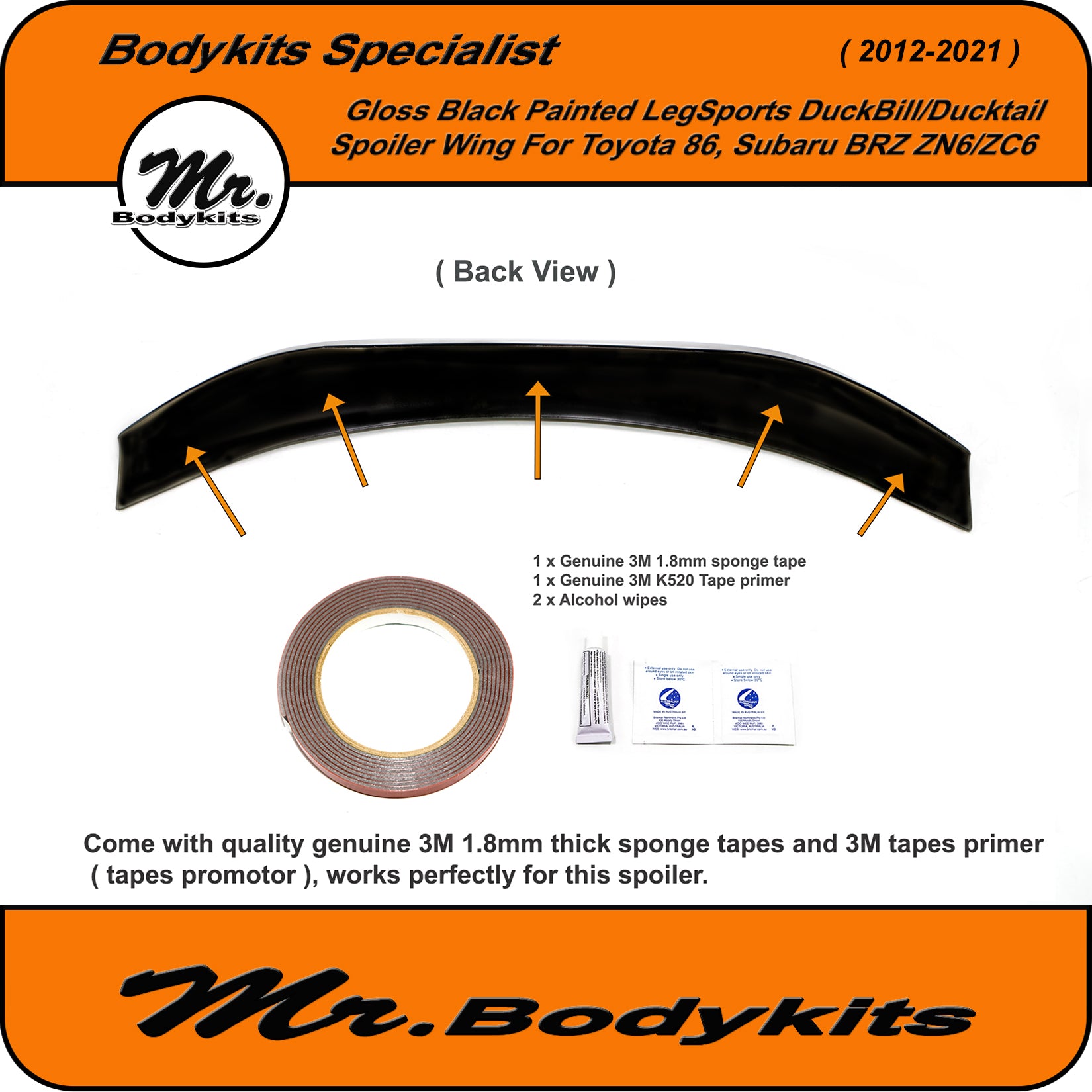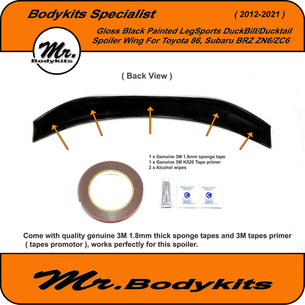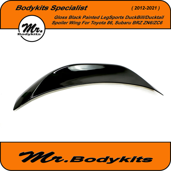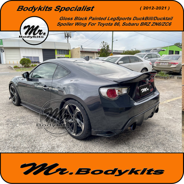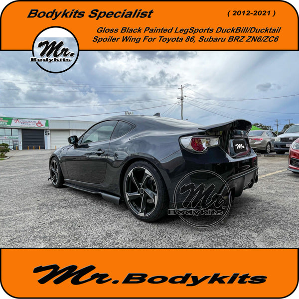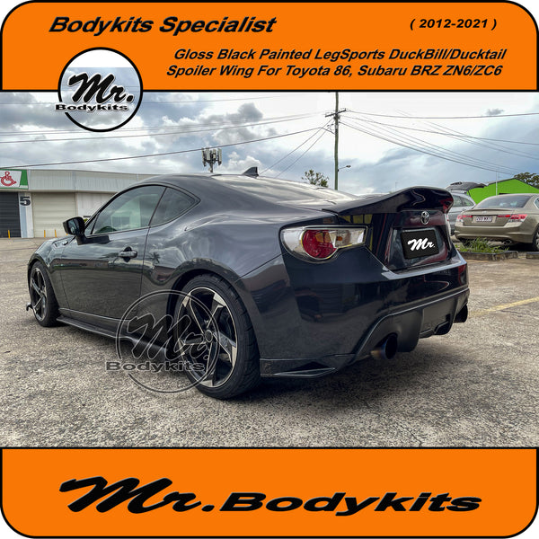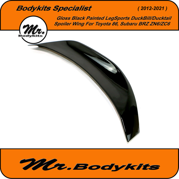 Mr Gloss black plastic made Legsport style rear boot ducktail spoiler for Toyota 86/ Subaru BRZ, 2012-2021 models, ZN6/ ZC6