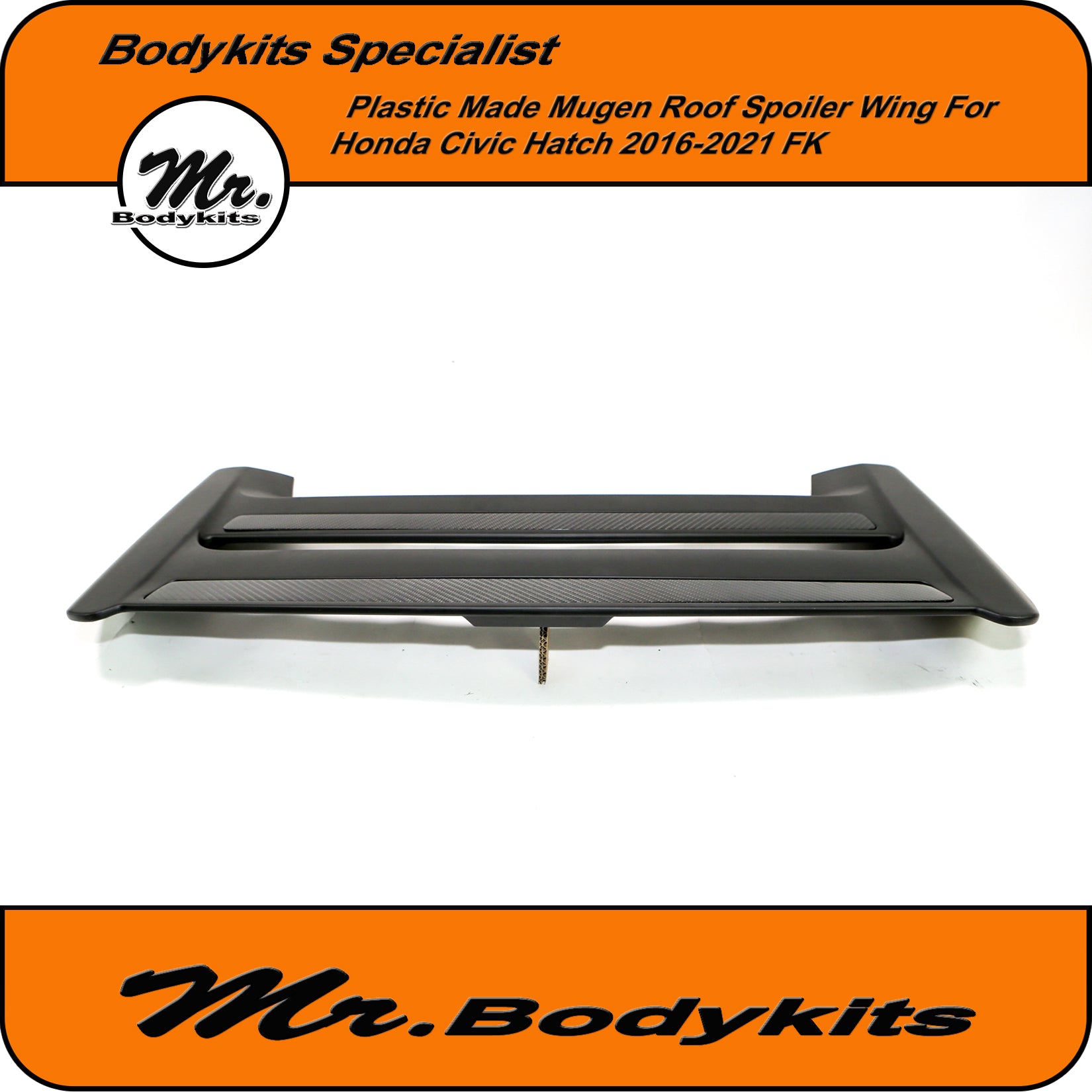 • Quality solid plastic made spoiler, 1:1 scale size/style and fitment as the original one, most of all, it comes with real carbon fibre strip, very unique roof spoiler.