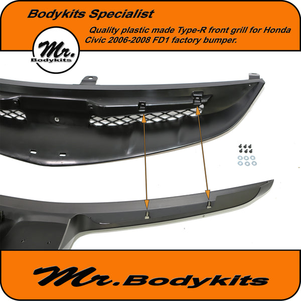 Quality plastic made Type -R front grille for Honda Civic 2006-2008 FD1 (Pre-facelift)