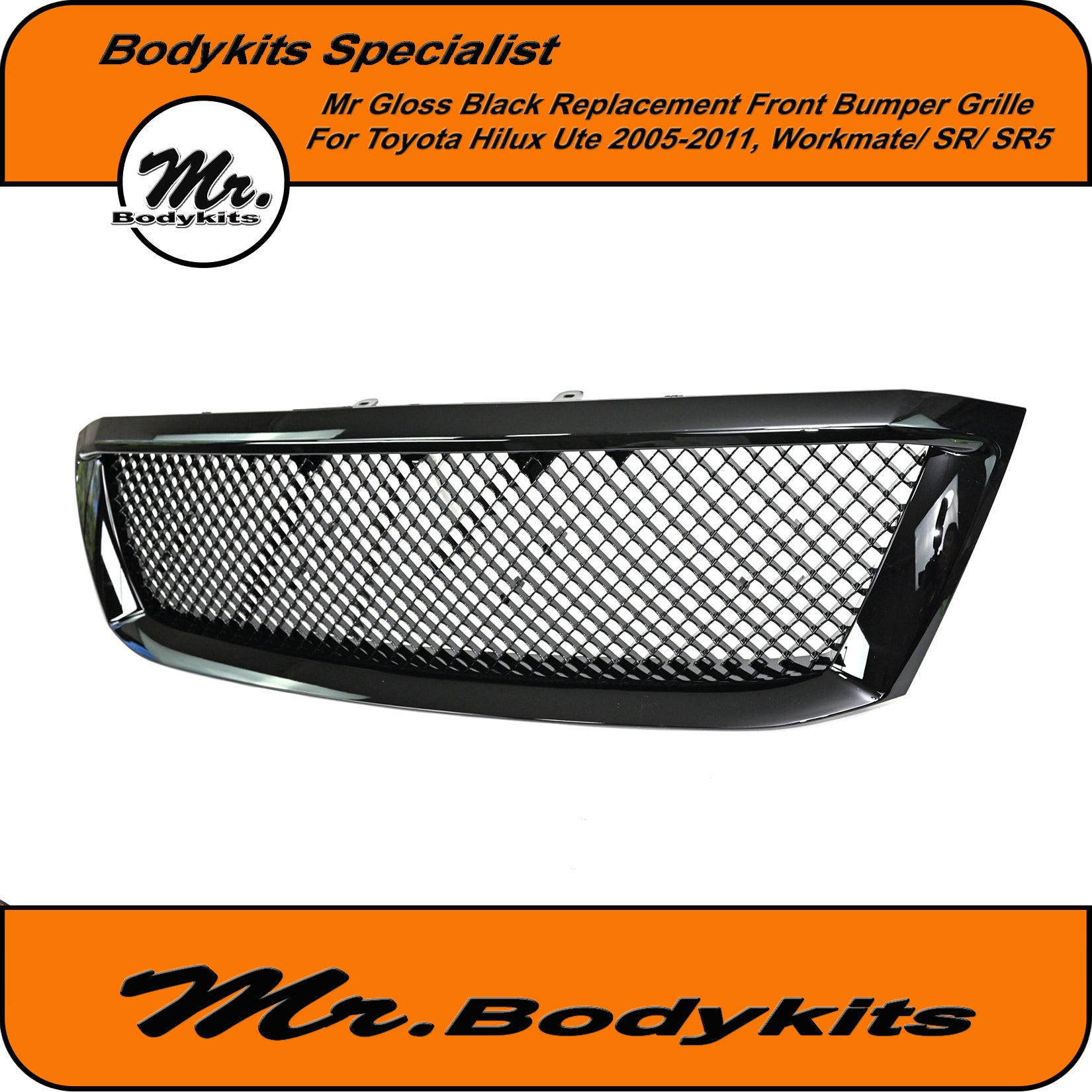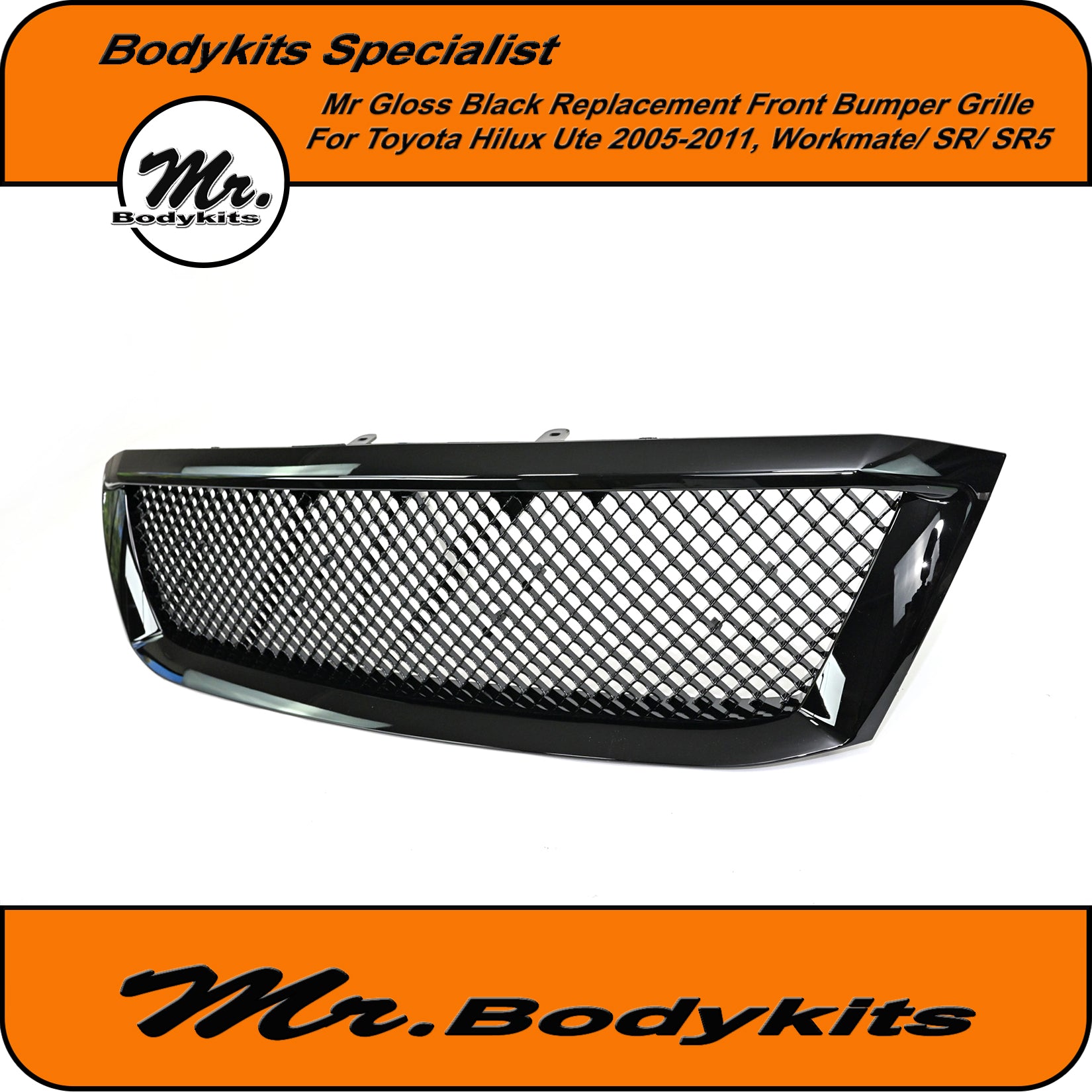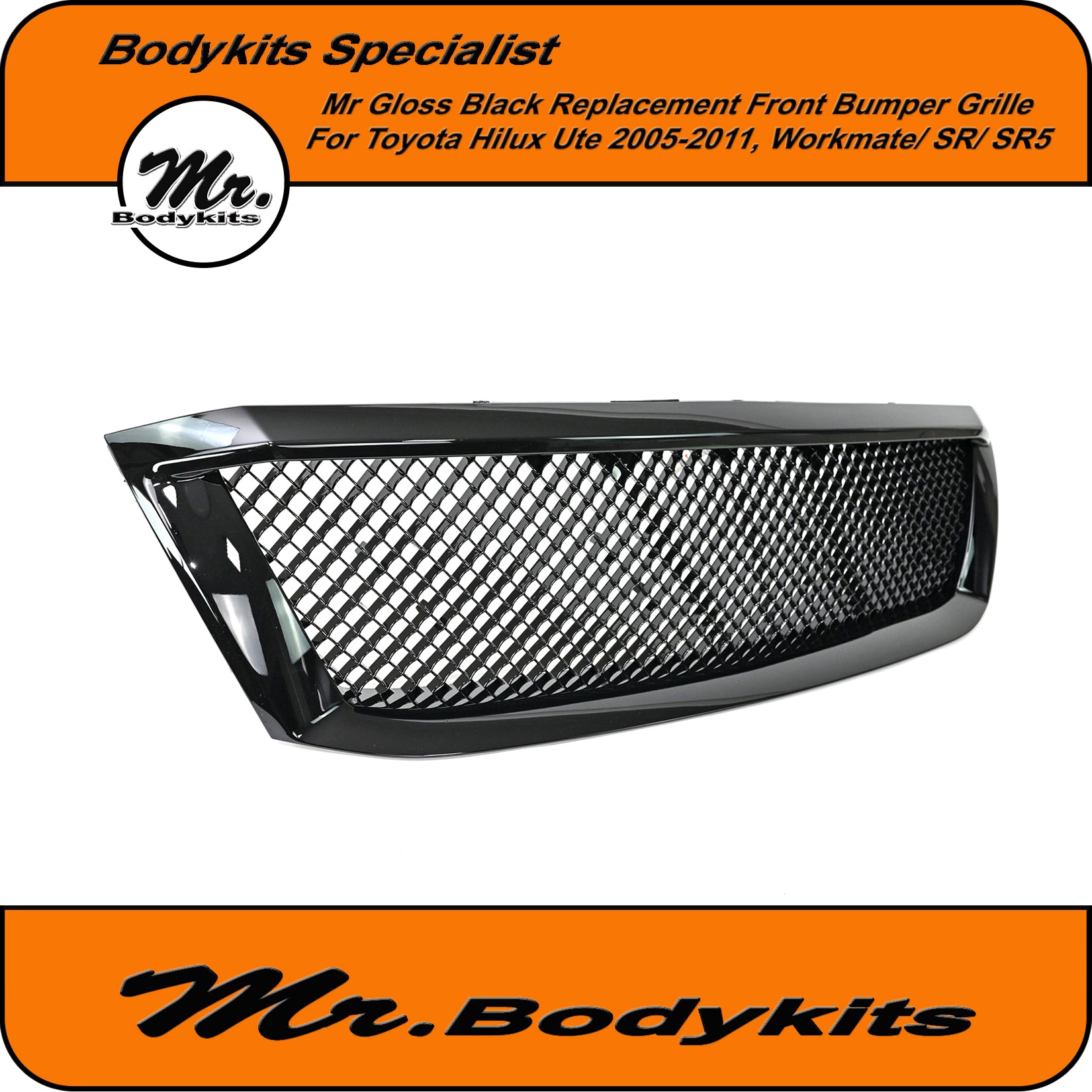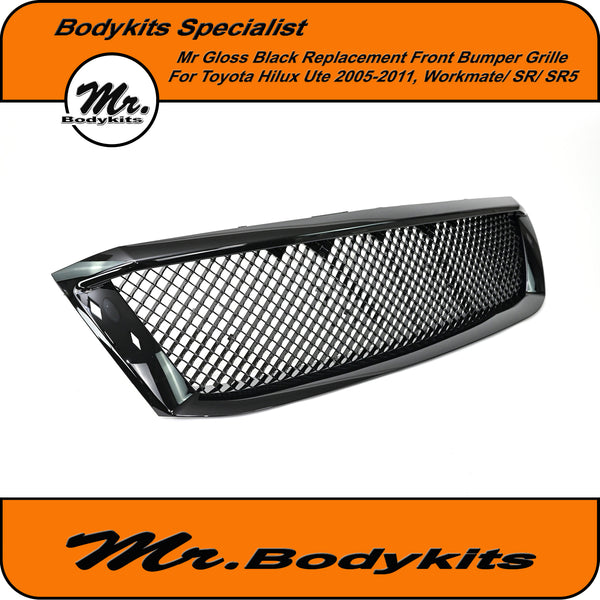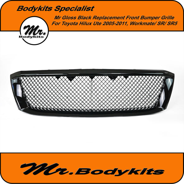 Gloss Black Badgeless Front Grille – Toyota Hilux N70 (2005-2012)