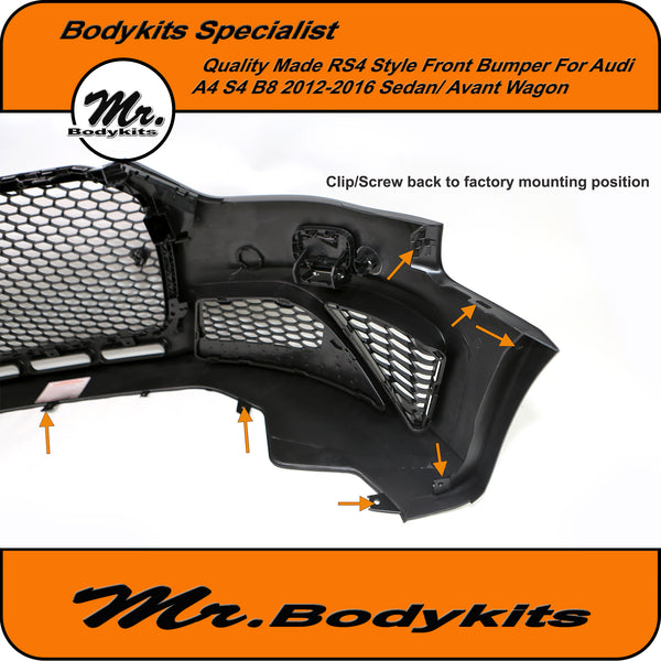 Brand New Quality Made RS4 Style Bumper With Grille and Foglight For Audi A4/S4 2012-2016 B8 Series Sedan/Avant Hatch