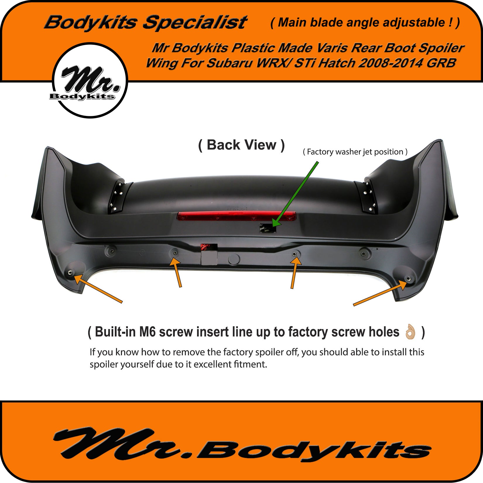 - Mr. plastic spoiler has a much better finish and fitment compared to fibreglass-made one, saves time and money to prep the surface, and fits great without any adjustment and pressure.