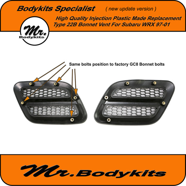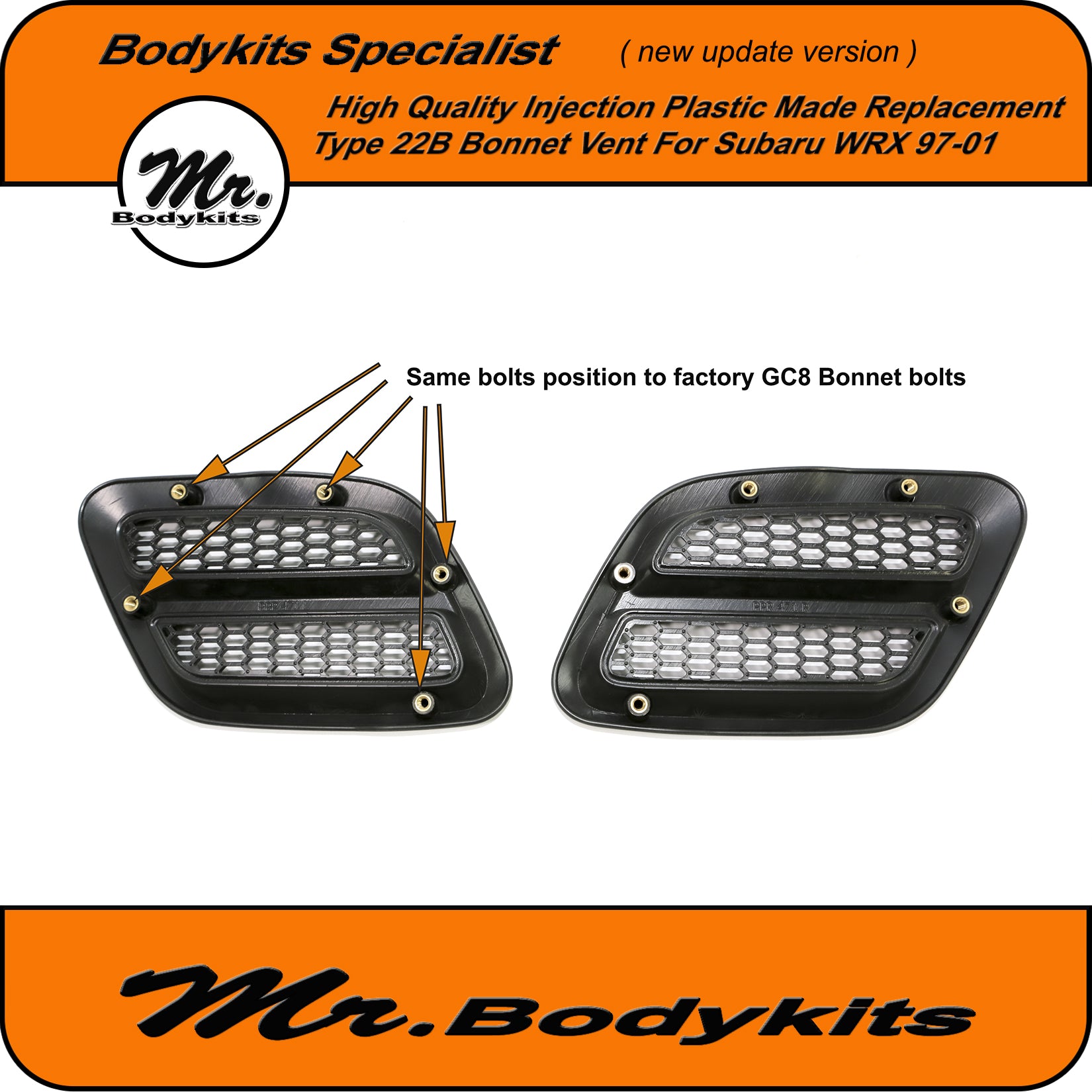 Brand new pair of quality made injection plastic made replacement 22B bonnet vent suit Subaru Impreza WRX/STi (Version 5 / Version 6 Bonnets)