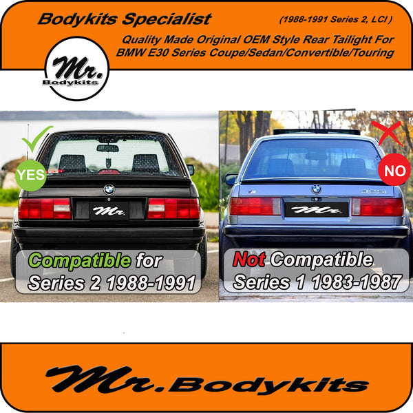 Quality Made OEM-Style Rear Tail Lights for BMW E30 (1988–1991) Series 2 – Coupe, Sedan, Convertible, Touring