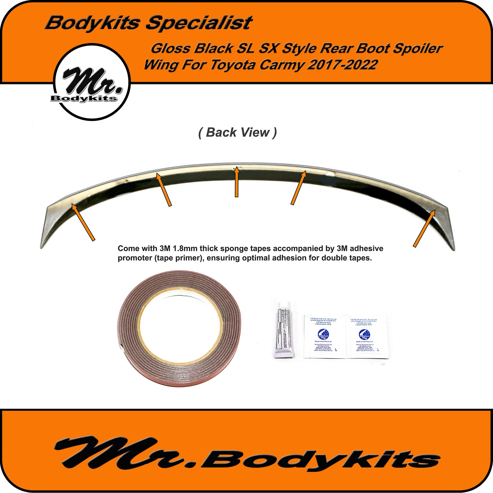 - Come with genuine 3M tapes and 3m tape primer kits, ready to install within 10mins of installation time. ( please make sure to apply the 3M tapes primer where the double-size tape goes on, back of the spoiler and on the surface where the tapes going to stick on👌🏻 )