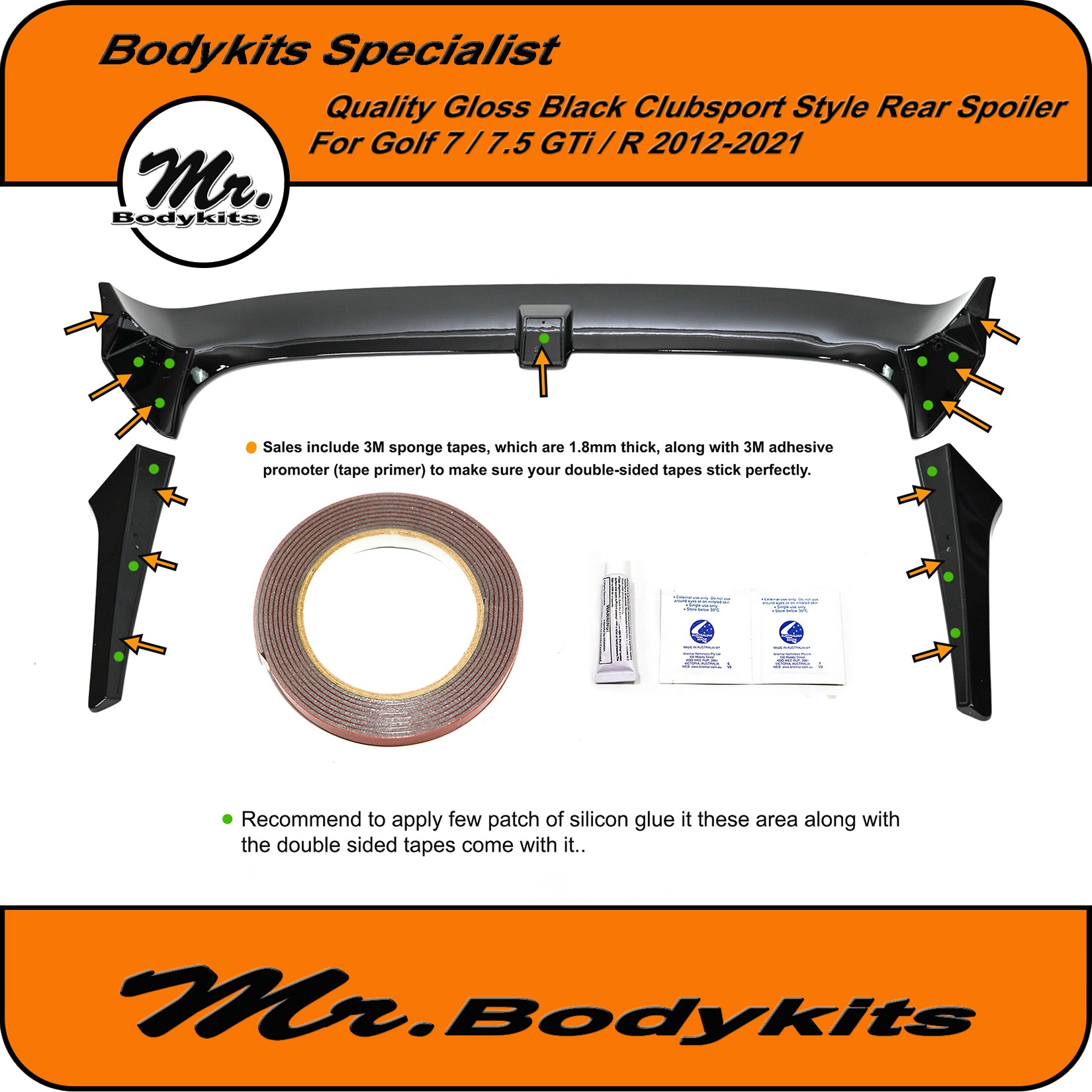 - Come with genuine 3M tapes and 3m tape primer kits, ready to install within 10mins of installation time. ( please make sure to apply the 3M tapes primer where the double-size tape goes on, back of the spoiler and on the surface where the tapes going to stick on👌🏻 )